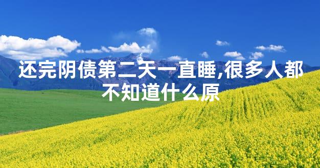 )。因为人一出生就带有一些阴债,这些阴债可能是上辈子欠别人还没有结清就去世了,还有些是在投胎转世的时候跟地府借的买路钱,等到投胎转世之后就要把这些钱还上,这就是所谓的还阴债。还完阴债第二天一直睡,这是身心解脱的一种表现,如果一个人的身上有太多的阴债没有偿还的话,那么会对自身的运势和身体健康都有影响,如果是前世欠有太多的人情债、桃花债等没有偿还的话那么这些债主这辈子可能会化作你身边的亲人来向你讨债,还有可能化作一些动物来伤害你,例如蛇鼠之类的。如果你是欠地府的阴债没有及时偿还的话还会有生命危险,有可能会被阎王爷提前召回。
