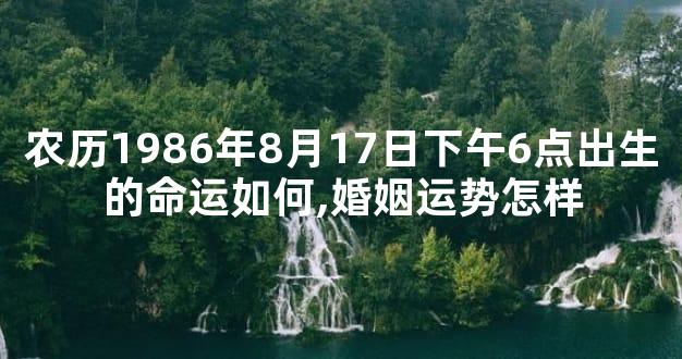 每个人从出生的时候就拥有不同的命运,他们有着属于自己的生辰八字。但是这只是根据公历来看的,并不是所有的情况都是这样的。那么,农历1986年8月17日下午6点出生的人命运如何呢?